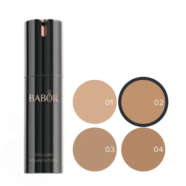 Deluxe Foundation ist eine reichhaltige, cremige Foundation mit “4-fach Anti-Aging-Effekt“ und hoher Deckkraft für jede anspruchsvolle, eher trockener Haut. Erhältlich in 4 Farben.Hauttyp: Eher trockene und regenerationsbedürftige Haut.