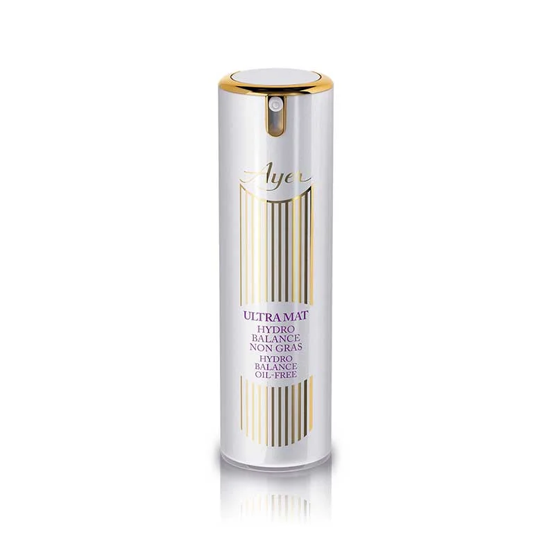 Das Hydro Balance Oil Free aus der Ayer-Speziallinie Ultra Mat ist eine regulierende Rundumversorgung für ein porenverfeinertes und mattiertes Hautbild.Der 24h-Moisturizer ist angereichert mit Hyaluronsäure, Vitamin E und hautidentischen Aktivstoffen die den antioxidativen Zellschutz der Haut entfalten und den zu sauren pH-Wert öliger Haut stabilisert. Die Haut wird beruhigt, vor freien Radikalen geschützt und mattiert. Ergänzen Sie ihre tägliche Pflege-Routine mit dem Hydro Balance Oil Free mit integriertem UVB-Filter.