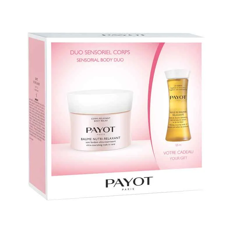Das perfekte Pflegeduo für Ihren Körper von Payot. Das Duo Sensoriel enthält den Body Relax Baume Nutri-Relaxant mit 200 ml Inhalt und das Huile de Douche Relaxante mit 125 ml Inhalt. Beginnen Sie Ihre Körperpflege mit dem Duschöl Huile De Douche Relaxante. Das Duschöl reinigt und pflegt Ihren Körper zugleich. Beruhigende Extrakte aus weißem Tee und Jasmin entspannen beim Duschen Ihren gesamten Körper. Ihr Körper wird von dem Austrocknen und Feuchtigkeitsverlust bewahrt. Im Anschluss schenken Sie Ihrem Körper mit dem Body Relax Baume Nutri-Relaxant Körperbalsam ein nährendes, glattes und geschmeidiges Hautgefühl. Zudem wird Ihr Körper den ganzen Tag in einen angenehmen Duft gehüllt.