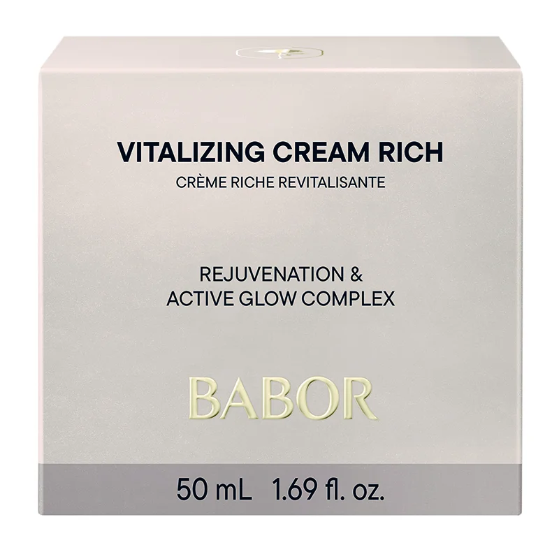 Die Vitalizing Cream rich von Babor ist eine reichhaltige Gesichtspflegecreme für müde und fahle Haut. Die Kombination von ATP, Algin und Papaya Extrakt hilft das Feuchtigkeitsdepot der Haut zu optimieren. Die Aktivierungsprozesse der Haut werden gefördert und abgestorbene Hautzellen werden entfernt. Die Hautregeneration, sowie die Zellerneuerung werden unterstützt. Der mineralische Wirkstoff-Komplex hilft, Unregelmäßigkeiten zu minimieren und fördert einen ebenmäßigeren und glatteren Teint. Vor lichtbedingten Schäden (Digital Aging) wird Ihre Haut durch den enthaltenen Kakaoextrakt geschützt. Das Hautbild wirkt optisch sofort verfeinert, frischer und vitalisiert, mit mehr Ausstrahlung. Der Extrakt aus den Blättern der (Schweizer) Alpenrose hilft bei regelmäßiger Anwendung die Haut vor oxidativem Stress zu bewahren und optimiert die Elastizität Ihrer Haut. Marine Polysaccharid kräftigt die natürliche Hautbarriere und unterstützt das Mikrobiom der Haut. Die Vitalizing Cream rich bereichert Ihre Haut mit einem optimal versorgten Pflegegefühl und einer rosig frischen Haut, für einen jugendlicheren Teint.Hauttyp: Für die müde, fahle regenerationsbedürftige Haut geeignet.