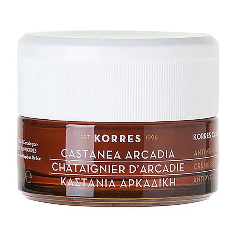 Die Castanea Arcadia Tragescreme von Korres ist eine Anti-Falten Pflege auf allen Ebenen. Sie repariert permanente Falten und verbessert die Hautstruktur. Somit erhält die Haut neue Strahlkraft und wirkt spürbar frischer.Die Anti-Falten Pflege Castanea Arcadia Tragescreme von Korres pflegt auf allen Ebenen. Sie repariert permanente Falten und verbessert die Hautstruktur, sie wird fester, widerstandsfähiger und elastischer. Somit erhält die Haut neue Strahlkraft und wirkt spürbar frischer. Es ist eine rundum wirksame Creme mit natürlichen Inhaltsstoffen.