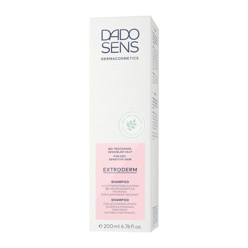 Dieses Shampoo aus der Pflegeserie EXTRODERM von DADO SENS ist mild und beruhigt Ihre gereizte Kopfhaut. Es reinigt Ihre Haare und schenkt neues Volumen.Eine juckende und gereizte Kopfhaut kann sehr störend wirken! Sollten Sie unter diesen unangenehmen Reizen leiden ist es besonders wichtig, ein mildes Shampoo zu verwenden. Es wurde speziell für die trockene und sensible Haut entwickelt und in Zusammenarbeit mit anerkannten dermatologischen Instituten und Kliniken auf Hautverträglichkeit getestet. Durch seinen Spender lässt er sich gut dosieren. Er enthält Salze aus dem Toten Meer, die wiederum wertvolle Mineralien und Spurenelemente beinhalten. Sie wirken beruhigend auf Ihre Kopfhaut. Die milden Substanzen des Shampoos reinigen Ihre trockene, schuppige und empfindliche Kopfhaut und lindern den Juckreiz. Weitere Wirkstoffe tragen dazu bei, dass Ihr Haar gekräftigt wird und mehr Fülle und Glanz erhält. Da auf Tierextrakte, Farbstoffe, Silikone, Paraffine und PEG verzichtet wird, kann auch bei Babys mit Milchschorf auf der Kopfhaut verwendet werden. Aber auch zur Therapiebegleitung von Neurodermitis und Psoriasis ist es gut geeignet. Ihr Haar sieht wieder schön und gepflegt aus.