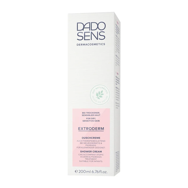 Wenn Sie unter extrem trockener und sensibler Haut leiden, verwenden Sie am besten die Duschcreme aus der EXTRODERM Serie von DADO SENS. Sie spendet intensive Feuchtigkeit und macht Ihre Haut geschmeidig.Die richtige Duschcreme für die extrem trockene Haut zu finden ist nicht einfach! Denn es kann viele Gründe geben, weshalb Sie unter sehr trockener Haut leiden. Warum probieren Sie nicht einmal die Duschcreme von DADO SENS? Der Komplex aus Inka-Omega, Borretschsamenöl und Vitamin F spendet ausreichende Feuchtigkeit. Die Feuchtigkeit wird gebunden und die Widerstandsfähigkeit Ihrer Haut wird gestärkt. Da Sie vegan hergestellt wird und auf Konservierungs-, Duft und Farbstoffe, Silikone, Paraffine und PEG verzichtet wird, ist sie besonders sanft zu Ihrer Haut. Auch kann sie therapiebegleitend bei Neurodermitis und Psoriasis und sogar bei Kleinkindern angewandt werden. Wenn Sie sich einmal eine längere Auszeit im Bad gönnen wollen, können Sie die Duschcreme auch als Badezusatz verwenden. Durch den praktischen Spender lässt sie sich besonders gut dosieren. Ihre trockene Haut wird gereinigt und Sie erhalten ein samtig-weiches Hautgefühl.