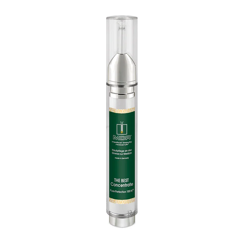 Ein leistungsstarkes, zielgerichtetes Pflegeserum hat MBR Medical Beauty Research mit dem The Best Concentrate aus der Pflegeserie Pure Perfection 100N entwickelt. Es dringt in die tiefer gelegenen Hautschichten und mildert die Zeichen der Hautalterung.Glatter und jünger aussehende Gesichtskonturen erhalten Sie mit dem The Best Concentrate. Durch seine hocheffizienten Wirkstoffe mildert es die ersten Zeichen der Hautalterung. Es steigert die Kollagenproduktion und sorgt so dafür, dass die Falten von innen wieder aufgepolstert werden. Dadurch gibt es Ihrer Haut langfristig Volumen zurück. Gleichzeitig wird der Feuchtigkeitsgehalt der Haut wieder aufgefüllt. So fördert es die Elastizität und Festigkeit der Haut. Ihre Haut dankt es Ihnen mit einem jugendlicheren Aussehen.