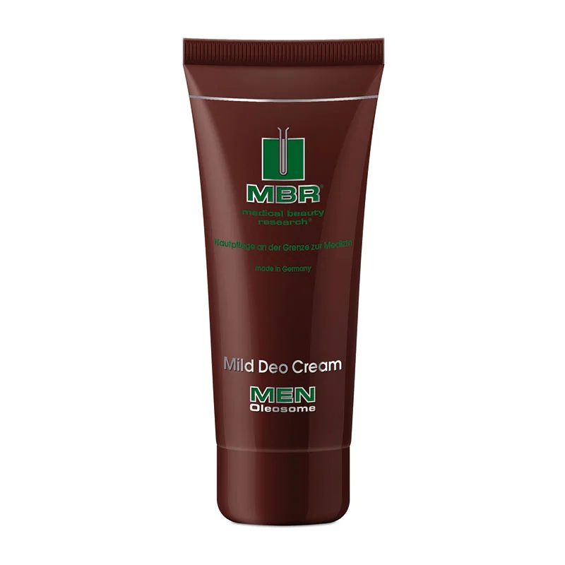 Die Mild Deo Cream aus der MenOleosome Pflegeserie von MBR Medical Beuty Research sorgt für langanhaltende Körperfrische und pflegt den Achselbereich. Es ist besonders hautfreundlich, da es ohne Alkohol hergestellt wird.Den optimalen Frischespender für den ganzen Tag bietet Ihnen die Mild Deo Cream von MBR. Dank seiner verträglichen Formel ist es für die tägliche Anwendung optimal geeignet. Es zieht schnell ein und hinterlässt keine Rückstände. Mit seiner langanhaltenden Frische kommen Sie gut durch den Arbeitsalltag. Sie fühlen sich den ganzen Tag wie frisch geduscht!