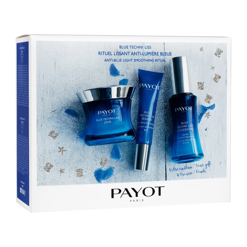 Ein schönes Geschenk bietet Ihnen Payot mit dem Blue Techni Liss Set. Darin befinden sich hautschützende Hautpflegeprodukte, die Ihre Haut perfekt vor blauem Licht schützen und feine Linien mindern. Ihr Hautbild wird ebenmäßiger und straffer.