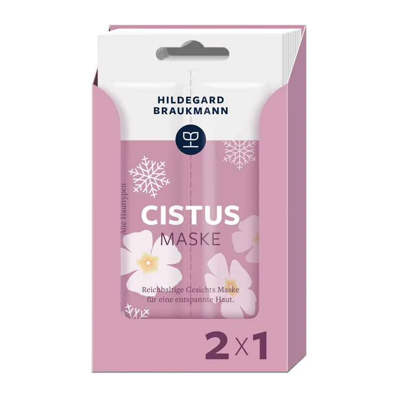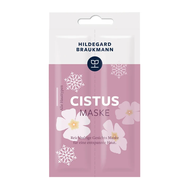 Die limitierte Cistus Maske von Hildegard Braukmann ist eine Wohltat für gestresste und feuchtigkeitsarme Haut. Gönnen Sie sich und Ihrer Haut eine Auszeit vom stressigen Alltag und nehmen Sie sich etwas Zeit nur für sich. Die Wirkstoffe Jojobaöl und Phytosqualan pflegen Ihre Haut samtweich und geschmeidig. Das Jojobaöl schützt außerdem gegen Trockenheit und erhält Ihre Haut glatt. Aromamoleküle aus der Montpelier Zistrose können helfen die Freisetzung von Wohlfühlpeptiden in Ihrer Haut zu stimulieren. Der botanische Extrakt aus Grünem Kardamom besitzt antioxidative Eigenschaften. In der Aromatherapie wird das ätherische Öl gerne zur Stressbewältigung eingesetzt.
