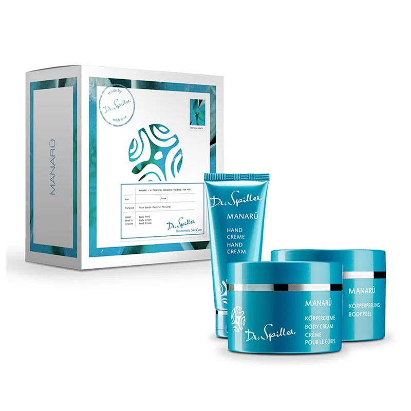 Pflegen Sie Ihren Körper mit dem Manaru Körperpflegeset von Dr. Spiller. Es versorgt Ihre Haut mit ausreichend Feuchtigkeit und trägt dazu bei, dass Ihr Hautbild verfeinert wird.