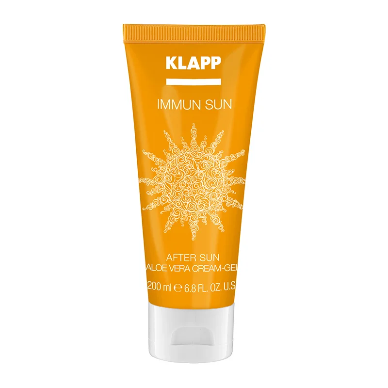 Pflegen Sie Ihre Haut nach dem Sonnenbaden mit dem After Sun Aloe Vera Cream Gel aus der Immun Sun Serie von Klapp. Ihre Haut wird mit Feuchtigkeit versorgt, besänftigt und vor freien Radikalen geschützt.UVA- und UVB-Strahlen sind ein Stressfaktor für Ihre Haut und begünstigen eine vorzeitige Hautalterung. Das entzündungshemmende After Sun Aloe Vera Cream Gel von Klapp enthält feuchtigkeitsspendende Aloe Vera und Vitamin E. Das Immunsystem und die Zellen Ihrer Haut werden vor UV-Strahlen, Trockenheit und Hitze geschützt und gestärkt.
