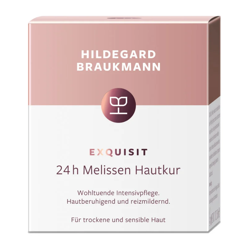 Die Melissen Hautkur aus der Exquisit Serie von Hildegard Braukmann ist eine 24-Stunden Pflege für die trockene, gerötete und gereizte Haut jeden Alters. Für mehr Spannkraft und Elastizität.