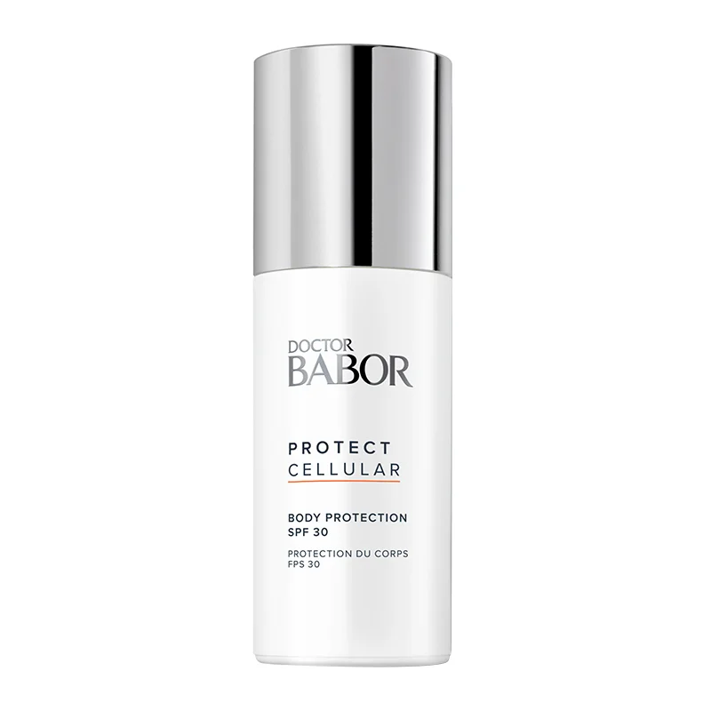 Der schnell einziehende und feuchtigkeitsspendende Body Protector mit SPF 30 aus der Protect Cellular Reihe von DOCTOR BABOR bietet Ihnen Schutz vor UVA-/UVB-Strahlen und umweltbedingter Hautalterung.Schützen Sie Ihren Körper vor freien Radikalen und intensiver Sonnenbestrahlung mit dem Body Protector SPF 30 von DOCTOR BABOR. Mit Breitbandfilter, Kerzenstrauchextrakt und einem Protect-Complex bleiben Sie vor einer frühzeitigen, lichtbedingten Hautalterung und Irritationen geschützt. Beta-Glucan und Feigenkaktus-Extrakt haben beruhigende Eigenschaften und unterstützen die Regeneration der Haut.