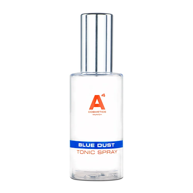 Schützen Sie Ihre Haut vor digitalem Licht mit dem Blue Dust Tonic Spray von A4 Cosmetic Munich. Es stärkt die Widerstandskraft und trägt zu einem ebenmäßigeren Hautbild bei.