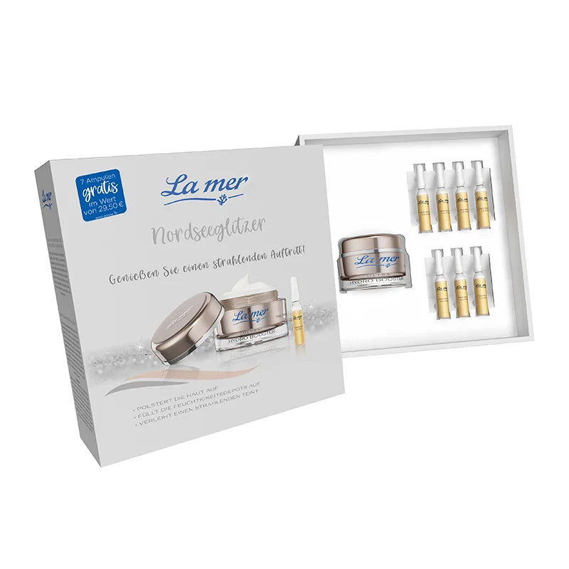 Mit dem Nordseeglitzer Set von La mer ist Ihnen ein strahlender Auftritt garantiert! Die Gesichtscreme und Ampullen geben Ihrer Haut den ultimativen gesunden Glanz!