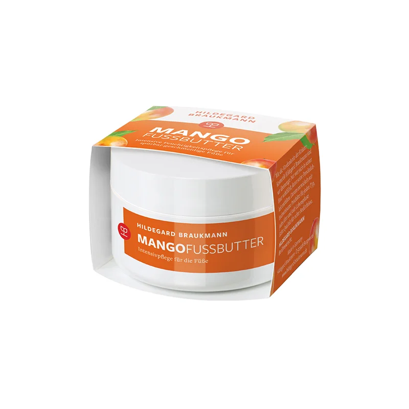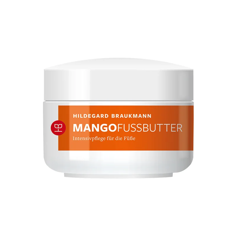 Sind Ihre Füße oft trocken und zeigen Rötungen? Dann pflegen Sie sie doch mit der limitierten Mango Fussbutter von Hildegard Braukmann. Sie macht Ihre rissigen und trockenen Füße wieder geschmeidig-zart.