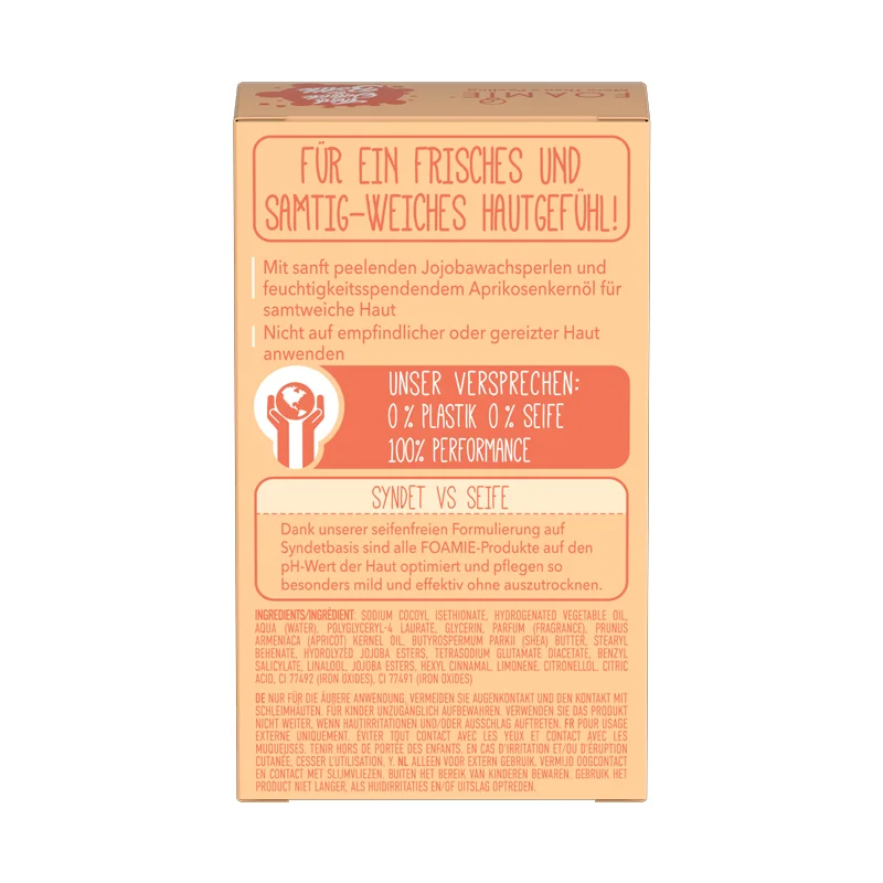 Ein sanftes Peeling bietet Ihnen das feste Körperpeeling mit Aprikosenkernen & Sheabutter von Foamie. Ihre Haut wird gepflegt und erhält ein samtig-weiches Hautgefühl.