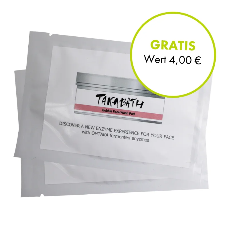 Genau diese Enzyme sind in dem praktischen Wash Pad enthalten. Es beinhaltet mehreren Funktionen in einem Produkt. Denn es besteht aus einer tiefenreinigenden rosa Peelingseite und einer schonenden weißen Pflegeseite. Wasserlösliche AHA und essenzielle pflanzliche Inhaltsstoffe entfernen effektiv abgestorbene Hautzellen, Make-up Rückstände und Schmutzpartikel bis tief in die Dermisschicht, ohne die Haut zu reizen. Nach Kontakt mit der feuchten Haut entstehen reichlich milde Seifenblasen, die Ihre Haut langanhaltend mit Feuchtigkeit versorgen und das Gleichgewicht zwischen Feuchtigkeit und hauteigenen Lipiden wiederherstellen. Hocheffektive Wirkstoffe tragen dazu bei, dass der Hautton verbessert wird und Altersflecken gemildert werden. Durch den pH-Wert 5,5 ist er sanft zu Ihrer Haut und lindert Hautreize und Hautschädigungen. Takabath verzichtet bei der Fermentationstechnik auf schädliche Wirkstoffe wie Parabene, künstliche Farbstoffe, BHT und Formaldeyd. Mit diesen Pads bringen Sie Ihre Haut wieder zum Strahlen.