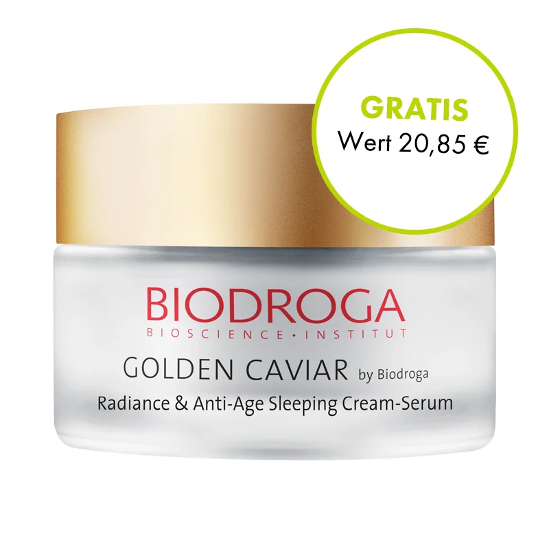 Das Radiance & Anti-Age Sleeping Cream Serum aus der Golden Caviar Reihe von Biodroga regeneriert Ihre Haut über Nacht. Wachen Sie am nächsten Morgen mit einer vitalen und erholten Haut auf.Inhaltsstoffe: Water (Aqua), Glycerin, Pentylene Glycol, Cyclopentasiloxane, Isoamyl Laurate, Squalane, Avocado (Persea Gratissima) Oil, Shea (Butyrospermum Parkii) Butter, Bifida Ferment Lysate, Coconut (Cocos Nucifera) Oil, Silybum Marianum Ethyl Ester, Hydroxyethyl Acrylate/Sodium Acryloyldimethyl Taurate Copolymer, Isoamyl Cocoate, Caviar Extract, Sodium Hyaluronate, Sodium Acetylated Hyaluronate, Hylocereus Undatus Fruit Extract, Soybean (Glycine Soja) Protein, Fragrance (Parfum), Palmitoyl Hexapeptide-19, Dimethicone/Vinyl Dimethicone Crosspolymer, Phenoxyethanol, Sorbitan Isostearate, Tetrasodium Edta, Sodium Carboxymethyl Betaglucan, Alcohol, Tocopherol, Caprylic/Capric Triglyceride, Biosaccharide Gum-1, Maltodextrin, Glycine, Valine, Sodium Benzoate, Citric Acid, Potassium Sorbate, Sodium Dextran Sulfate, Disodium Cocoamphodiacetate, Ascorbyl Palmitate