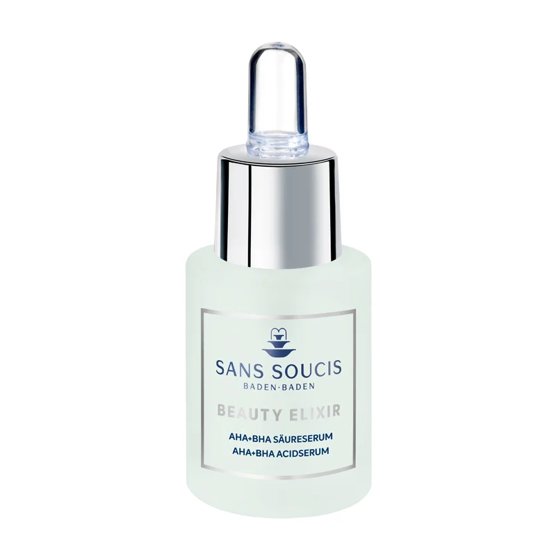 Ein neues Serum bietet Ihnen Sans Soucis in der Beauty Elixir Linie mit dem AHA + BHA Säureserum. Es glättet die Haut und sorgt für eine besondere Ausstrahlung.