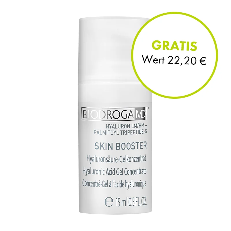 Das Hyaluronsäure- Gelkonzentrat aus der SKIN BOOSTER Serie von Biodroga MD vereint eine Kombination aus hoch- und niedermolekularen Hyaluronsäuren. Für eine fühlbar geschmeidige und durchfeuchtet Haut.