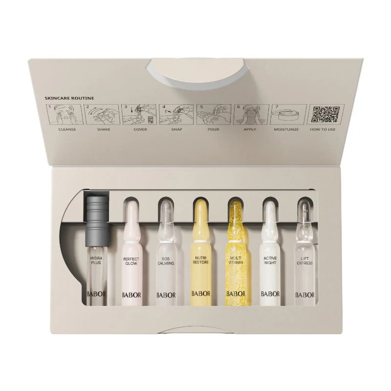 Die 7 Days Perfect Skin Collection ist der Nachfolger der beliebten White Collection von Babor. Sie bietet eine perfekt abgestimmte 7-Tage Ampullen-Intensiv-Kur für maximale Hauterneuerung. Jede ikonische Ampulle enthält eine hochkonzentrierte Wirkstoffformel, die Ihre Haut Schritt für Schritt mit Feuchtigkeit versorgt, aufbaut und regeneriert - für ein sichtbar geglättetes, strahlendes Hautbild. Die Kur beginnt mit intensiver Feuchtigkeit und endet mit gezielter Regeneration und Anti-Aging-Pflege - für ein jugendliches, revitalisiertes Aussehen.