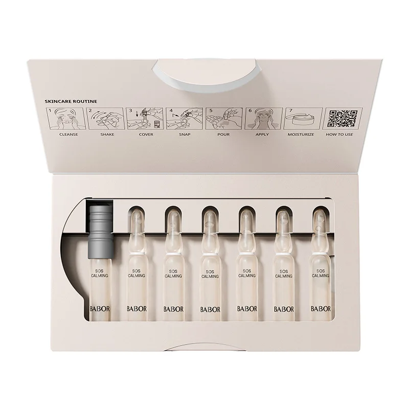 Die SOS Calming Ampulle aus der AMPOULE CONCENTRATES Linie von BABOR sorgt für schnelle Abhilfe bei Rötungen und Spannungsgefühlen.Ihre Haut wird täglich vielen Faktoren ausgesetzt, die sie reizen und stressen können. Mit Hilfe der SOS Calming Ampulle von BABOR können Sie bei ersten Anzeichen von Rötungen und Spannungsgefühlen entgegenwirken. Ein Pilz-Extrakt und Aloe Vera, sorgen für sofortige Beruhigung der Haut und verhelfen ihr zu einem frischen und entspannten Zustand. Zusätzlich wird mit Tigergras-Extrakt die Hautbarriere gestärkt und die Hautregeneration unterstützt. Durch die feuchtigkeitsspendende und beruhigende Wirkung ist SOS Calming auch nach einem Sonnenbad eine wohltuende Erfrischung für Ihre Haut.