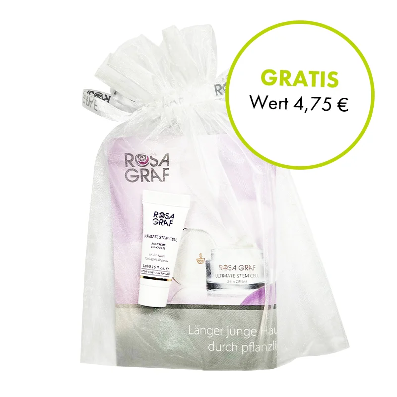 Verlängern Sie mit der Rosa Graf Ultimate Stem Cell 24-h Creme die Jugendlichkeit Ihrer Haut. Die Stammzellenextrakte aus der Alpenrose schützt Ihre Haut und lässt sie frisch aussehen.Inhaltsstoffe: Aqua(Water), Squalane, Glycerin, Isostearyl Isostearate, Polyglyceryl-3 Methylglucose Distearate, Prunus Amygdalus Dulcis Oil, Simmondsia Chinensis (Jojoba Seed) Oil, Octocrylene, Argania Spinosa ( Kernel ) Oil, Dimethicone, Cetearyl Alcohol, Butyrospermum Parkii (Shea Butter), Stearic Acid, Persea Gratissima (Avocado) Oil, Sorbitol, Urea, Sodium PCA, Panthenol, Butyl Methoxydibenzoylmethane, Benzyl Alcohol, Sodium Lactate, Isomalt, Parfum, Allantoin, p-Anisic acid, Citric Acid, Xanthan Gum, Alcohol, Retinyl Palmitate, Helianthus Annuus (Sunflower) Seed Oil, Sodium Hydroxide, Tocopherol, Hydrolyzed Wheat Protein, Ubiquinone, Disodium EDTA, Glycine Soja (Soybean) Germ Extract, Sodium Hyaluronate, Resveratrol, Dehydroacetic Acid, Ascorbyl Palmitate, Lecithin, Rhododendron Ferrugineum Leaf Cell Culture Extract, Sodium Benzoate, Ascorbic Acid, Lactic Acid