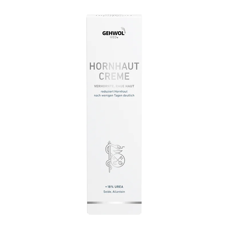 Die Gehwol med Hornhaut Creme wurde speziell entwickelt, um hartnäckige Hornhaut intensiv zu pflegen. Als 28-Tage-Kur wird diese Creme im 12 Stunden Abstand auf die betroffene Problemstelle aufgetragen. Die Creme hat einen hohen Anteil an Urea und darf nur bei intakter Haut angewendet werden. Die einzigartige Kombination aus Urea, Glycerin und Allantoin lockert den Zellverbund der Hornschichten und erweicht die Haut sofort. In nur wenigen Tagen ist eine spürbare Reduzierung der Hornhaut erkennbar und innerhalb von 28 Tagen wird in der Regel der Normalzustand der Haut erreicht. Die Creme enthält zudem Lipide, die die Haut vor Austrocknung schützen und stärken. Seidenextrakt spendet Feuchtigkeit und glättet die Hautoberfläche, um ein geschmeidiges und gepflegtes Aussehen zu erzielen- die Bildung von Rhagaden wird so verhindert. Um langfristig vor einer Neubildung von übermäßiger Hornhaut geschützt zu sein, wird eine anschließende Anwendung der Gehwol med Lipidro Creme empfohlen. Die Anwendung sollte nur auf intakter Hautoberfläche erfolgen und Augenkontakt vermieden werden.Hauttyp: Für trockene bis normale Haut geeignet.