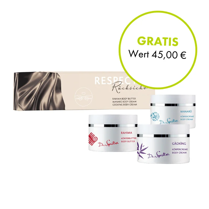 Sorgen Sie mit diesem wundervollen Körperpflege-Set Respect von Dr. Spiller für einzigartige Wohlfühlmomente. Sie bauen den Feuchtigkeits- und Lipidhaushalt auf und machen Ihre Haut geschmeidig.
