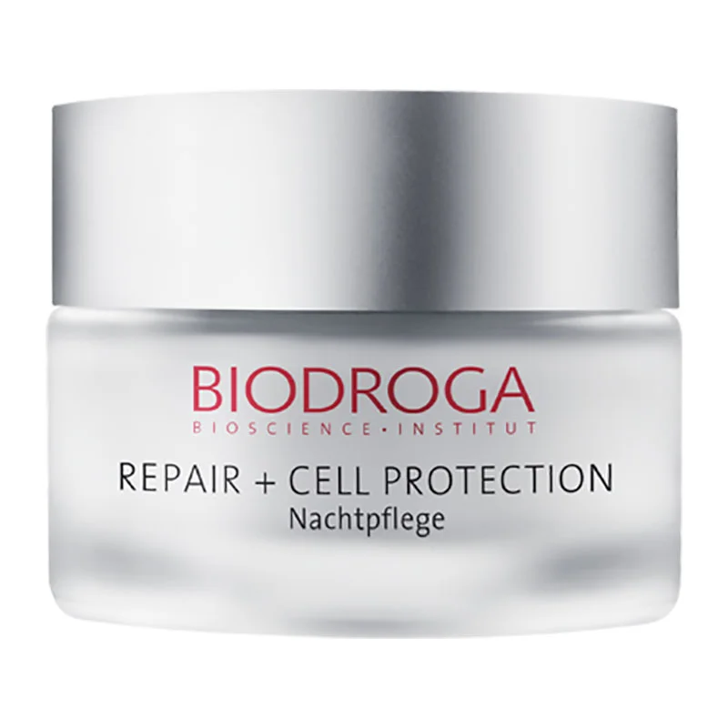 Die Nachtpflege von Biodroga aus der Repair + Cell Protection Serie ist eine Pflege, die Ihre Haut über Nacht repariert. Die Creme gibt Schutz vor lichtbedingten Hautschäden.Unsere Haut ist jeden Tag Stress ausgesetzt. Vor allem UV-Strahlung trägt zu einer frühzeitigen Hautalterung bei. Daher sollten Sie Ihre Haut davor schützen. Die Nachtpflege Repair and Cell Protection ist ein wahrer Repair-Booster. Abends aufgetragen, sorgt sie für eine intensive Reparatur während Sie schlafen. Angereichert mit Alpenrosenstammzellenextrakt wird gezielt gegen UV-Stress vorgegangen und ein sichtbarer Anti-Age Effekt erzeugt. Außerdem wird die Widerstandskraft Ihrer Haut gestärkt und durch den Ectoin und Repair Complex werden Falten gemildert. In der Regenerationsphase, wird die Hauterneuerung über Nacht beschleunigt. Schützen Sie ihre Haut und profitieren Sie von einem jugendlich, frischen Teint.