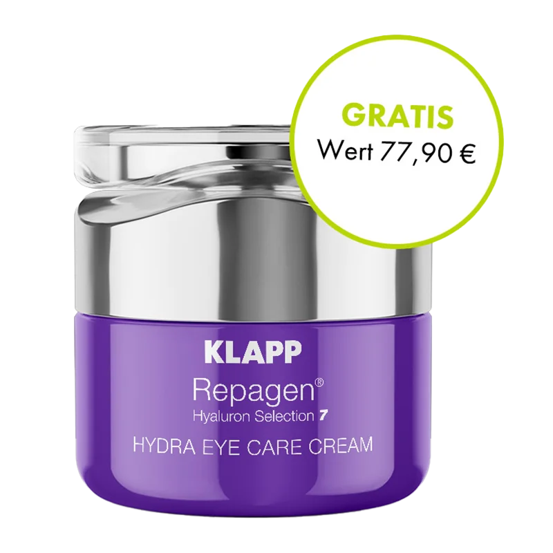 Mit der Hydra Eye Care Cream von Klapp aus der Repagen Hyaluron Selection 7 Serie wird Ihre Haut mit ausreichend Feuchtigkeit versorgt. Trockenheitsfältchen werden reduziert und Ihre Ausstrahlung unterstützt.