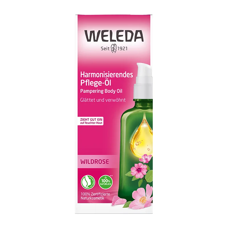 Das Weleda Wildrose Harmonisierendes Pflege-Öl ist eine wahre Naturkosmetik-Schönheit, die die Hautregeneration fördert und alle Hauttypen glättet und verwöhnt. Dieses einzigartige Pflegeöl wird nun noch praktischer mit einem Spender geliefert, um Ihre Anwendung zu vereinfachen.Die Vorteile des Pflege-Öls sind vielfältig. Es beruhigt und glättet die Haut, bringt sie ins natürliche Gleichgewicht und schenkt Ihnen einen entspannenden und harmonisierenden Duft, der Ihre Sinne verwöhnt. Das Geheimnis hinter dieser Pflege liegt im kostbaren Rosenöl, das nicht nur für die Haut, sondern auch für die Sinne eine wahre Wohltat ist. Es reguliert das natürliche Gleichgewicht Ihrer Haut und verströmt einen zartweichen Duft, der Entspannung und Harmonie bringt. Die Formel enthält feines Mandelöl, feuchtigkeitsbewahrendes Jojobaöl und das besonders hochwertige Kernöl der wildwachsenden Rosa Mosqueta, das reich an ungesättigten Fettsäuren ist. Diese kostbaren Inhaltsstoffe verwöhnen Ihre Haut und verleihen ihr Spannkraft und samtige Zartheit. Sie unterstützen den natürlichen Wärmeprozess des menschlichen Körpers, indem sie ihn in einen hauchzarten, atmungsaktiven Schutz warm einhüllen. Das ätherische Rosenöl, gewonnen aus eigens für Weleda biologisch angebauten Damaszenrrosen in der Türkei, verleiht dem hochwertigen Körperöl seinen zartweichen Duft. Dieses Pflege-Öl ist nicht nur ein Hautpflegeprodukt, sondern auch ein duftender Stimmungsmacher, der sowohl Haut als auch Sinne sanft umschmeichelt.