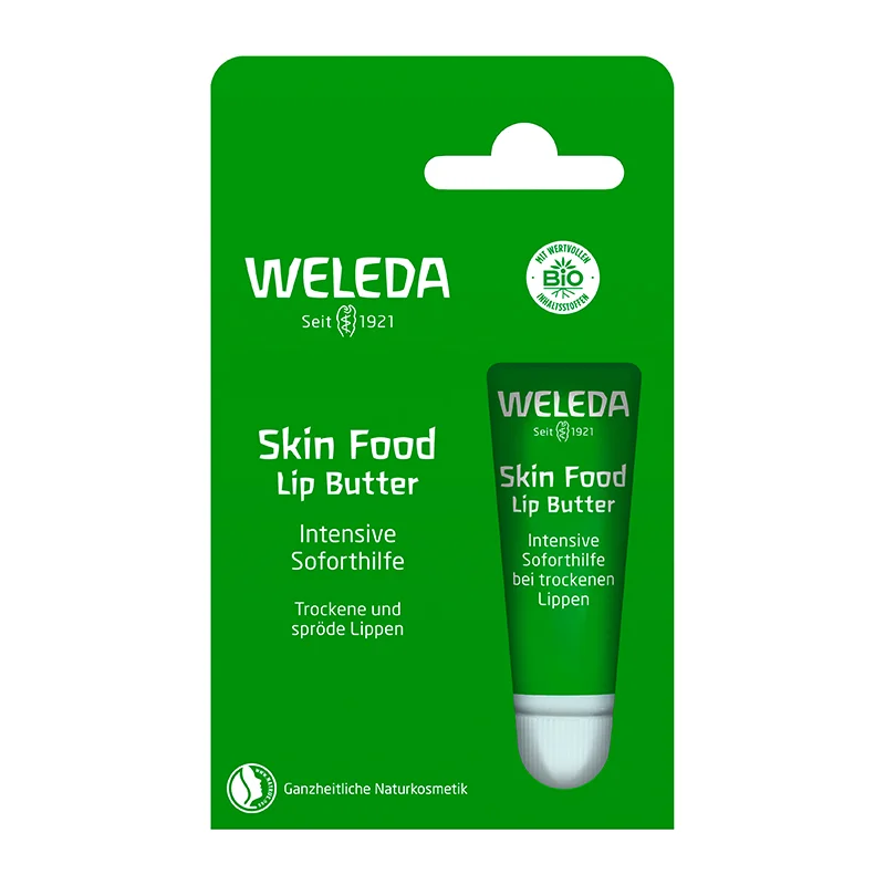 Sagen Sie Adieu zu rauen und spröden Lippen mit der Skin Food Lip Butter von Weleda. Ihre Lippen werden wieder geschmeidig-zart.Die häufigste Ursache für spröde und raue Lippen ist der Feuchtigkeitsmangel. Diese reichhaltige Lippenpflege nährt Ihre Lippen und macht sie wieder geschmeidig-weich. Mit wertvollen pflanzlichen Ölen und Bienenwachs bietet sie eine Intensive Naturkosmetik. Aber auch Extrakte aus Stiefmütterchen, Kamille, Rosmarin und Calendula tragen dazu bei, Ihre spröden Lippen optimal zu pflegen. Durch seine handliche Größe passt diese Lip Butter in jede Handtasche und ist ein perfekter Begleiter für unterwegs. Diese zarte Lippenpflege zaubert Ihnen ein Lächeln ins Gesicht.