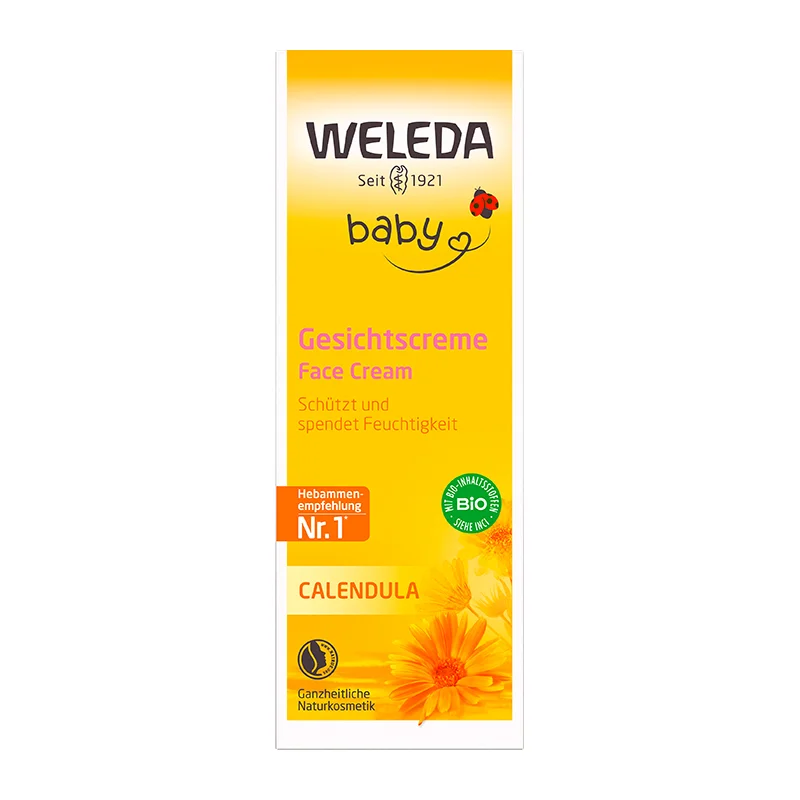 Die Weleda Calendula Gesichtscreme ist speziell darauf ausgerichtet, die empfindliche Gesichtshaut zu verwöhnen.Diese Naturkosmetik Feuchtigkeitscreme ist nicht nur für Babys geeignet, sondern auch für empfindliche Erwachsenenhaut. Sie schützt die Haut und versorgt sie gleichzeitig mit wertvoller Feuchtigkeit. Die milde Rezeptur enthält hochwertiges Mandelöl, das die Haut intensiv mit Feuchtigkeit versorgt. Damit die Haut nicht austrocknet wird reines Bienenwachs verwendet. Ein Extrakt aus kontrolliert-biologisch angebauter Calendula beruhigt und verwöhnt die Haut. Die Gesichtscreme lässt sich schnell auftragen und zieht mühelos ein, ohne ein klebriges Gefühl zu hinterlassen.