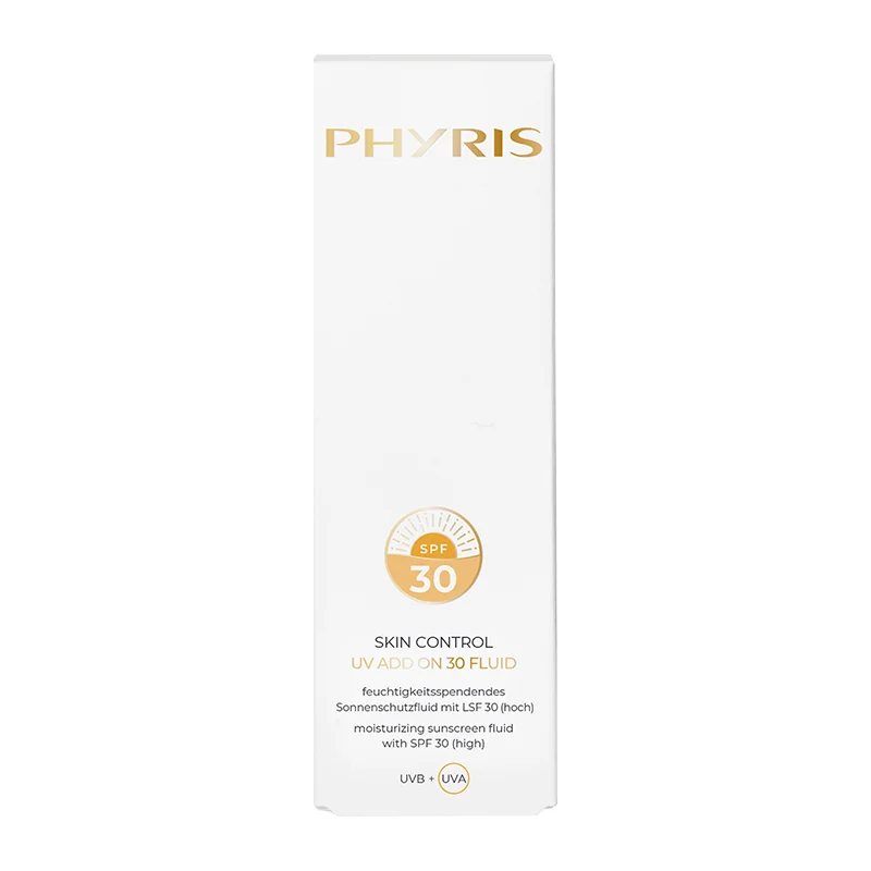Schützen Sie Ihre Haut mit dem Sonnenschutzfluid UV Add on 30 Fluid von Phyris vor UVA- und UVB-Strahlungen mit Lichtschutzfaktor 30. Dank der innovativen Formel mit zweifachem Hyaluron wird Ihre Haut zusätzlich langanhaltend mit Feuchtigkeit versorgt und bleibt geschmeidig. Der enthaltene Wirkstoff Ectoin wirkt antioxidativ und hilft, die Haut vor den schädlichen Auswirkungen von UV-Strahlen und frühzeitiger Alterung zu bewahren. Das Sonnenschutzfluid ist nicht fettend, zieht schnell ein und hinterlässt ein zartes Hautgefühl ideal geeignet für alle Hauttypen. Das Fluid ist frei von Duftstoffen und perfekt geeignet für alle, die sich eine hautfreundliche Sonnenpflege wünschen. Schützen Sie Ihre Haut, während Sie sie gleichzeitig verwöhnen mit dem Sonnenfluid aus der Skin Control Serie für jeden Tag.Hauttyp: Für jeden Hauttyp geeignet.