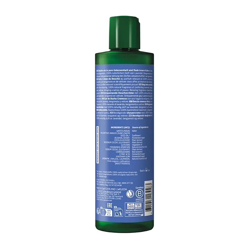 Tauchen Sie ein in die Welt der Entspannung mit der Weleda Relax Shower Cream Lavendel mit 400 ml Inhalt. Der wissenschaftlich bewiesene Duft aus Lavendel, Bergamotte und Vetiver fördert Wohlbefinden und Ruhe, perfekt, um den Alltagsstress hinter sich zu lassen. Die sanfte Cremedusche pflegt die Haut und spendet langanhaltende Feuchtigkeit. Die Shower Cream kommt ganz ohne synthetische Duftstoffe, Parabene oder Silikoneaus. Sie ist sanft zur Haut und zur Umwelt. Schon nach der ersten Anwendung fühlt sich die Haut wie eingecremt an.Auch in 200ml erhältlich!