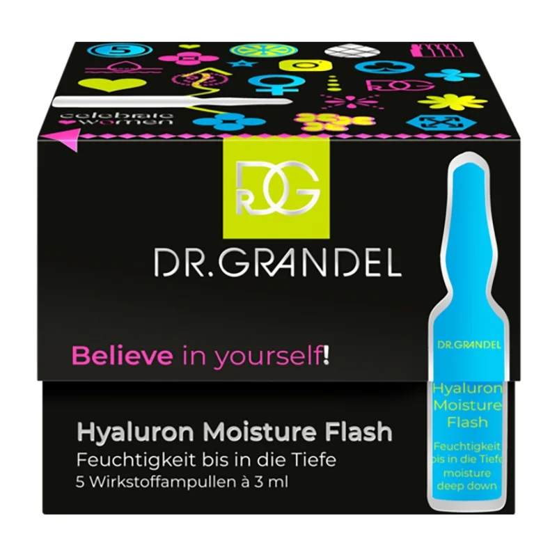 Nur solange der Vorrat reicht!Erleben Sie pure Feuchtigkeit mit den Hyaluron Moisture Flash Ampullen von Dr. Grandel. Diese limitierte Edition schenkt Ihrer Haut einen sofortigen Feuchtigkeitskick bis in die Tiefe und sorgt für ein strahlendes, erfrischtes Hautbild. Die hochwirksame Formel mit Micro Hyaluron durchflutet die Haut intensiv mit Feuchtigkeit, mildert Trockenheitsfältchen und verleiht einen prallen, frischen Teint. Perfekt für einen sofortigen Glow und eine sichtbar geglättete Hautstruktur!
