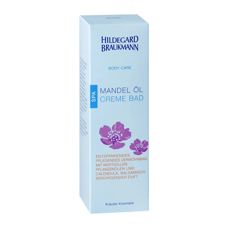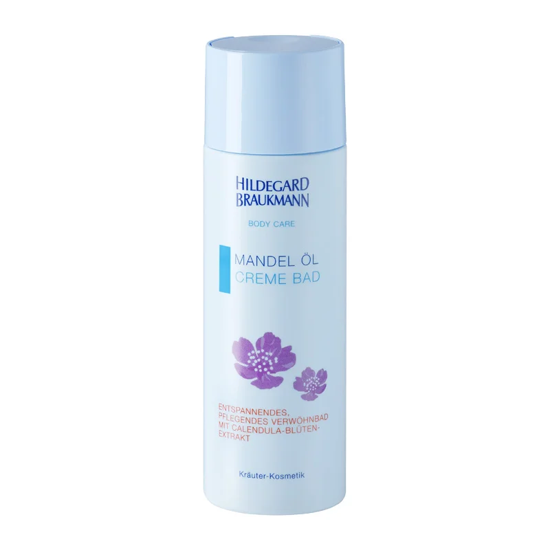 Mandel Öl Creme Bad ist besonders mild und pH-hautneutral. Angenehm rückfettend durch wertvolle Pflanzenöle, den Extrakt aus Calendula-Blüten und Vitamin E. Verwöhnbad mit einem besonderen, balsamisch beruhigenden Duft. Schenkt eine glatte gepflegte Haut.