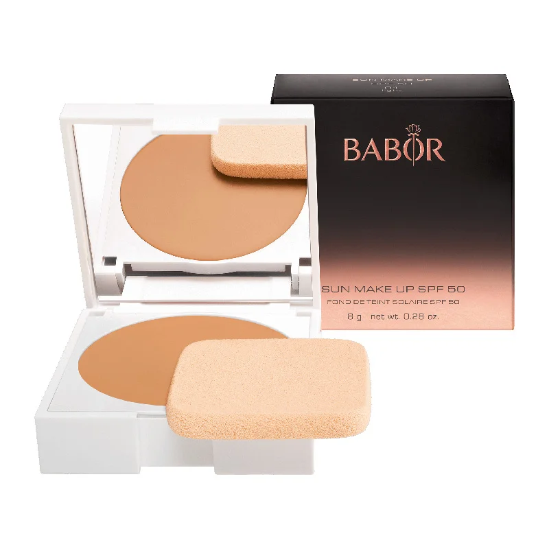 Möchten Sie auch im Sommer nicht auf Make-up verzichten? Dann hat Babor die praktische Lösung für Sonnenfans. Das Sun Make-up 01 light hat eine mittlere Deckkraft. Das cremige Kompakt-Make-up bietet mit seinem Lichtschutzfaktor 50 einen optimalen Schutz vor UVA- und UVB-Strahlung. Trotzdem sollten Sie die intensive Mittagssonne meiden. Auch eine zu geringe Menge reduziert den Sonnenschutz. Daher sollten Sie das cremige Make-up wiederholt auftragen, besonders wenn Sie schwitzen, nach dem Schwimmen oder Abtrocknen. Rosmarin-Extrakt fördert den Hautstoffwechsel und wirkt antioxidativ. Ihre Haut wird wieder ins Gleichgewicht gebracht. Hochwirksame Wirkstoffe pflegen und spenden Ihrer Haut ausreichende Feuchtigkeit. Dieses Sun Make-up ist auch in der Farbnuance 02 medium erhältlich. Es ist hervorragend verträglich und dank seiner Kompaktheit auch gut für unterwegs geeignet. Ihre Haut erhält einen sommerlich strahlenden Teint.