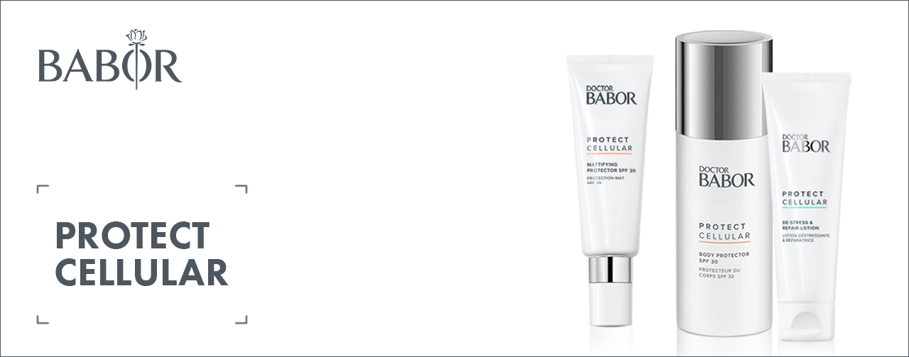 Die Protect Cellular Sonnenschutz- und Pflegelinie bietet einen 360 Grad Rundumschutz und somit ein perfektes Anti-Aging! UV-Strahlen sind ein häufiger Grund für einen rasch voranschreitenden Alterungsprozess und somit für die Entstehung von Pigmentverschiebungen und Falten.So entfaltet die ultraleichte Mattifying Protector Lotion ihre ganze Wirkstoffpower und bietet besten Schutz vor lichtbedingten Schäden. Gleichzeitig wird der Teint mattiert. Der Protecting Balm überzeugt mit einem hohen Lichtschutzfaktor und zieht zudem rasch in die Haut ein, ganz ohne zu verkleben. Zusätzlich zu den Protect Cellular Wirkstoffen enthält diese Kosmetik noch einen Pflegekomplex aus Beta-Glucan, Panthenol und N-Acetyl, der regenerierend und hautberuhigend wirkt. Die Protector Body Lotion bietet dem Körper einen perfekten Rundum-Sonnenschutz! Eine wunderbare Vervollständigung dieser Sonnenpflege ist die De-Stress und Repair Lotion, die der Gesichts- und Körperhaut nach dem Sonnenbaden eine angenehme Kühlung und Regeneration ermöglicht. Wertvollste Inhaltsstoffe stärken die Hautschutzbarriere und sorgen für eine langanhaltend entspannt aussehende Haut.