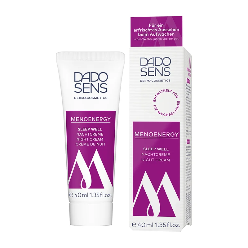 Während der Nacht läuft die Regeneration der Haut auf Hochtouren - die ideale Zeit, um sie gezielt zu unterstützen. Die MENOENERGY Sleep Well Nachtcreme von DADO SENS ist reichhaltig formuliert und schenkt der Haut ein Plus an Feuchtigkeit und Pflege. Veganes Kollagen stärkt das Kollagengerüst, das besonders in den Wechseljahren an Stabilität verlieren kann. Klinisch getestetes Green Chiretta unterstützt das Hautgleichgewicht und trägt zu einer beruhigten, widerstandsfähigen Haut bei. Gardenia-Frucht-Extrakt schützt vor äußeren Stressfaktoren und kann zugleich die Schlafqualität fördern. Anzeichen von Müdigkeit und Stress werden gemildert, sodass Sie mit einer frischeren, glatteren Haut aufwachen.Hauttyp: Für die reifere und sensible Haut geeignet.