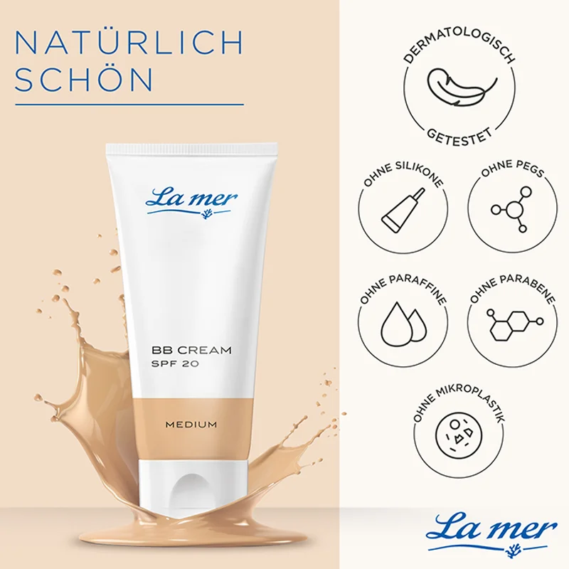 Pflege, Schutz und perfekter Teint in einem Schritt: Die BB Cream mit LSF 20 von La mer ist der ideale Begleiter für jeden Tag. Ihre innovative Formel enthält exklusiven Meeresschlick-Extrakt, der Ihre Haut intensiv mit Feuchtigkeit versorgt und sie gleichzeitig vor schädlichen Umwelteinflüssen schützt. Der enthaltene Lichtschutzfaktor 20 beugt lichtbedingter Hautalterung zuverlässig vor. Ein Extrakt aus Regenbogenalgen sorgt für einen strahlenden Teint, gleicht den Hautton sanft aus und schützt zusätzlich vor digitalem Blaulicht. Ein biobasiertes, nicht fettendes Öl stärkt die Hautbarriere und sorgt für ein geschmeidiges Hautgefühl ohne Glanz. Lichtreflektierende Pigmente und Silica perfektionieren das Hautbild, schenken einen natürlichen Glow und ein angenehm mattiertes Finish.Hauttyp: Für alle Hauttypen geeignet, auch empfindliche Haut.