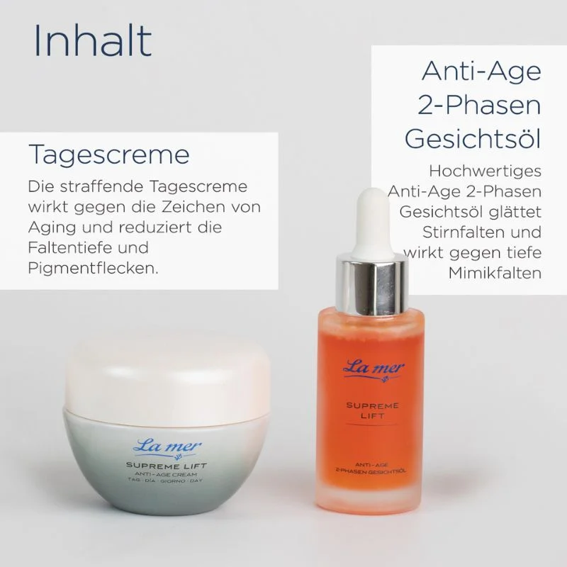 Erleben Sie jugendliche Strahlkraft und eine sichtbar straffere Haut mit dem Supreme Lift Set von La Mer. Die Kombination aus Anti-Age Cream für den Tag und Anti-Age 2-Phasen Gesichtsöl bietet eine effektive Lösung gegen Linien, Fältchen und Pigmentflecken. Für eine gepflegte, gesunde Haut, die sich elastisch und hydratisiert anfühlt.
